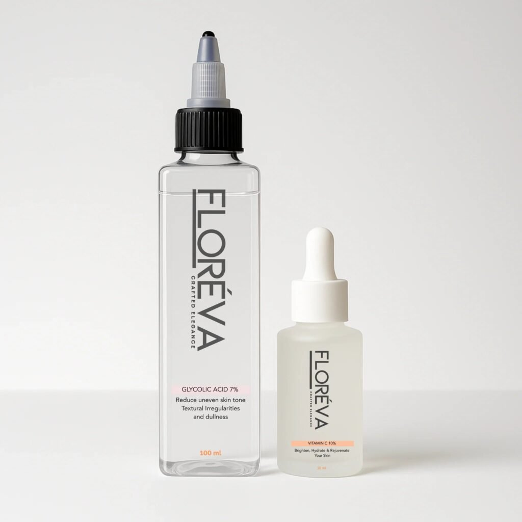 The Power Duo for Maximum Brightening u2014 Glycolic Acid Resurfaces While Vitamin C Brightens. Fastest Visible Results of Any Floreva Bundle. Save Rs. 499.